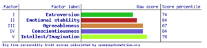 74. Factor I was labelled as Extroversion by the developers of the IPIP-BFFM. Factor I is sometimes given other names, such as Surgency or Positive Emotionality.